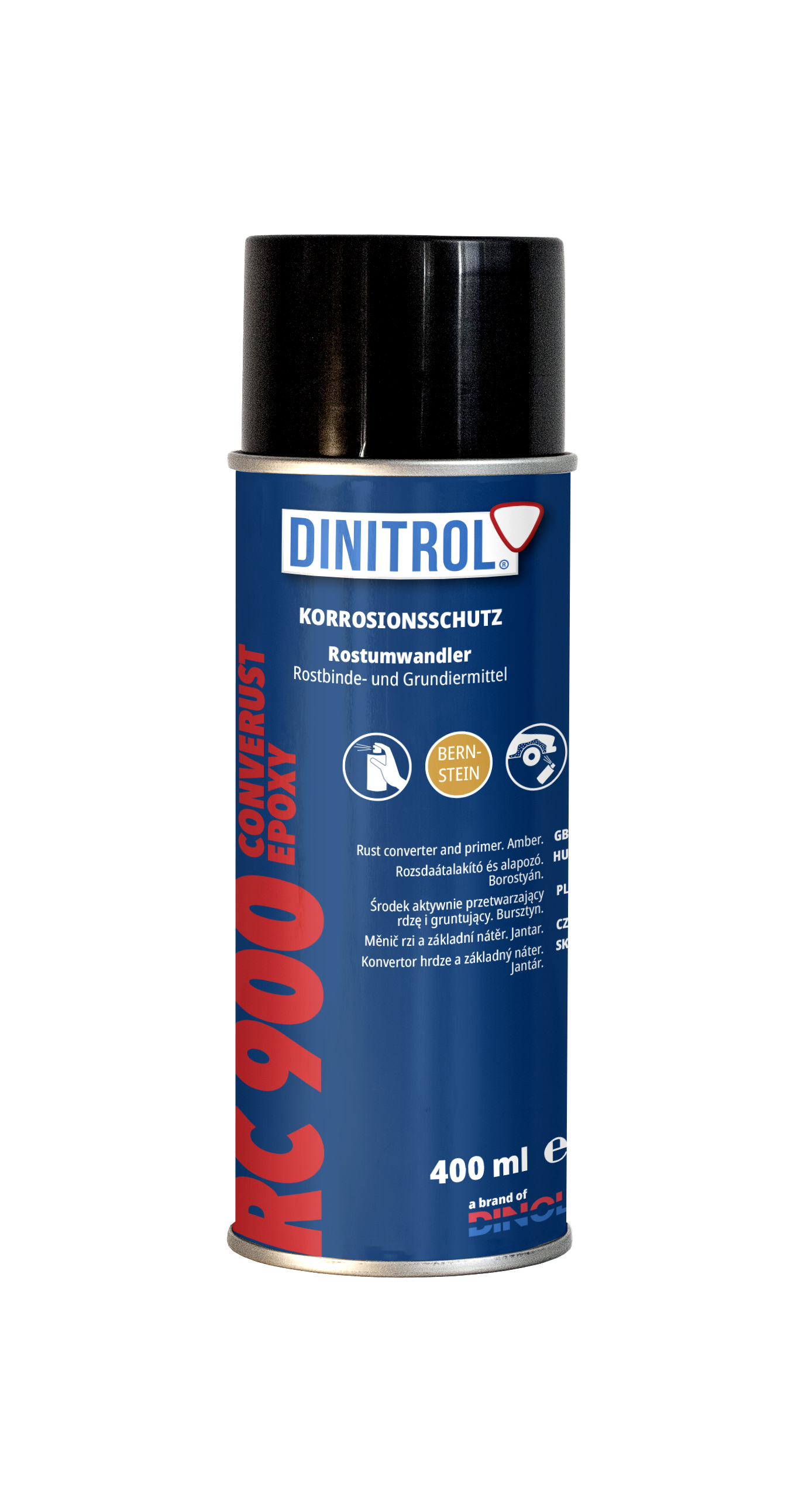 Dinitrol RC 900 Rost-Off-Primer ist ein Rostumwandler, Korrosionsschutz und, durch Anreicherung mit Epoxy-Harz, Grundierer in einem. Er bildet mit Eisen und Rost einen metallorganischen Eisenkomplex, der Rost wird so neutralisiert.