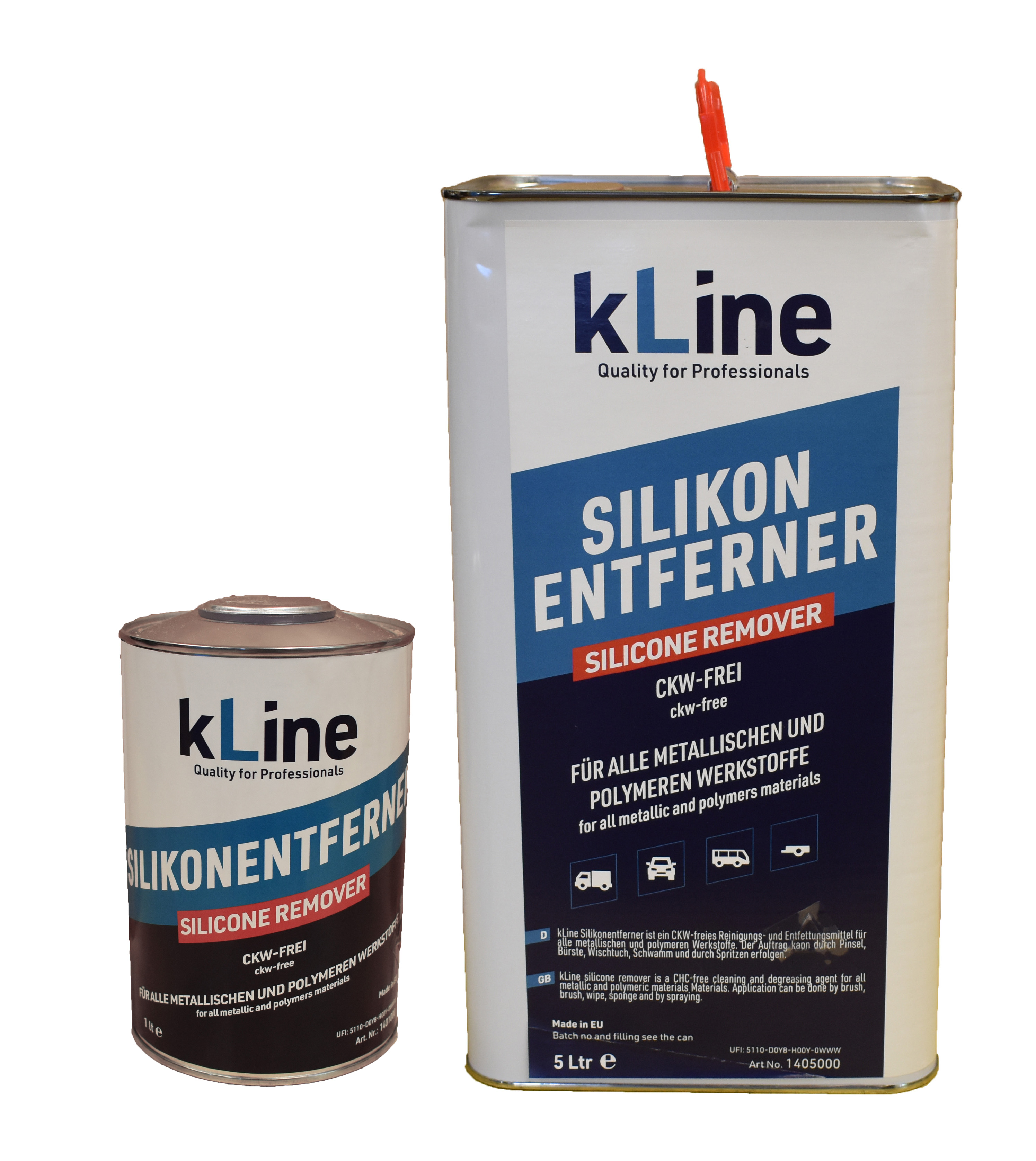 kLine Silikonentferner ist ein Xylol- und CKW-freies Reinigungs- und Entfettungsmittel für alle metallischen und polymeren Werkstoffe. Der Auftrag kann durch Pinsel, Bürste, Wischtuch, Schwamm und durch Spritzen erfolgen. Er löst Silikonöle, die in Polituren und Kunststoffpflegemitteln enthalten sind. Mineralöle sowie mineralische, pflanzliche und tierische Fette werden zuverlässig beseitigt. Das Produkt ist rückstandsfrei schnelltrocknend und greift Kunststoffe und Lacke nicht an.