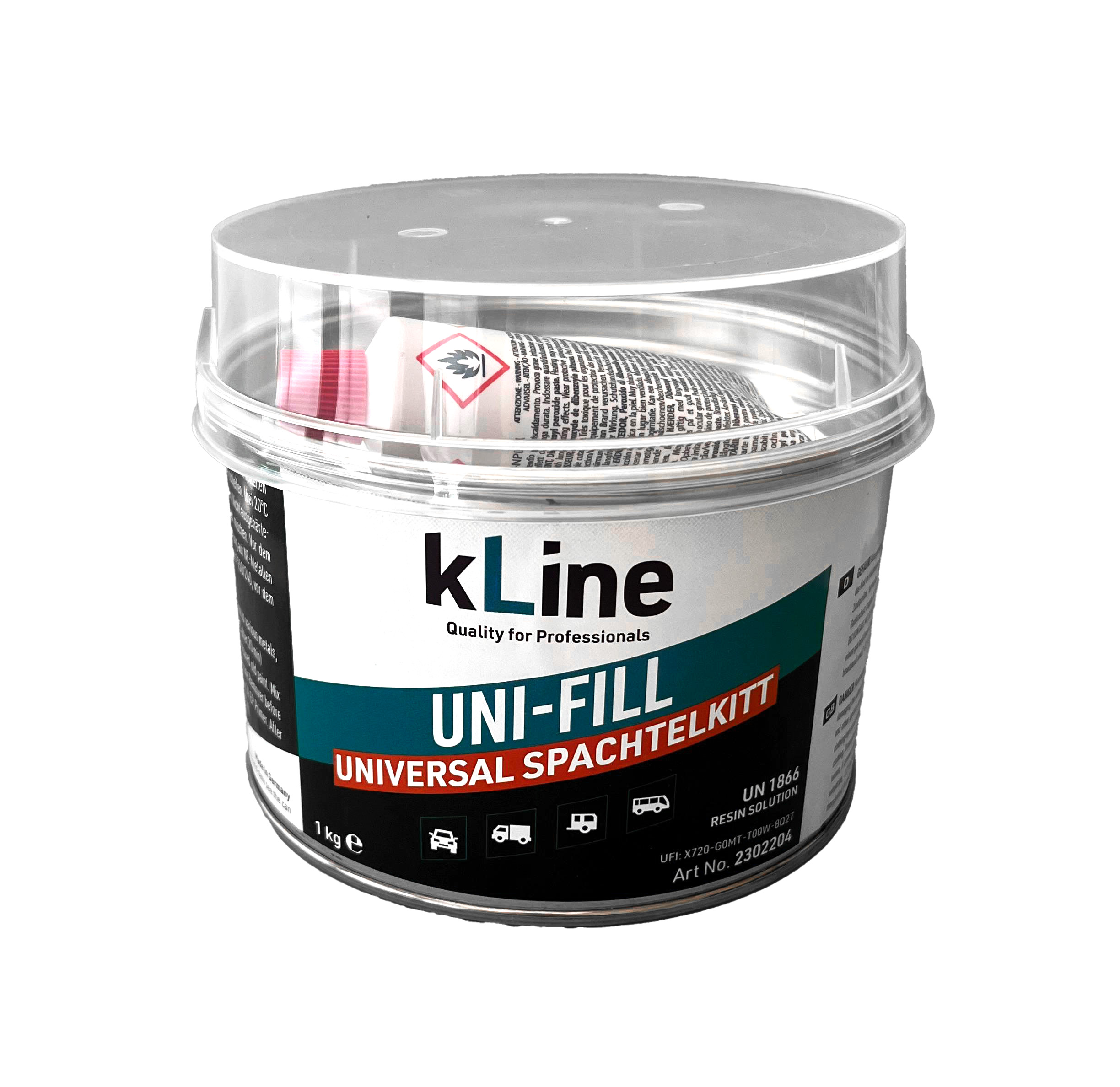 kLine UNI-Fill ist ein vielseitiger Füll- und Finish Spachtel mit hervorragender Haftung auf Metall, GFK und Holz, der sich durch kurze Trockenzeit und leichte Schleifbarkeit auszeichnet.